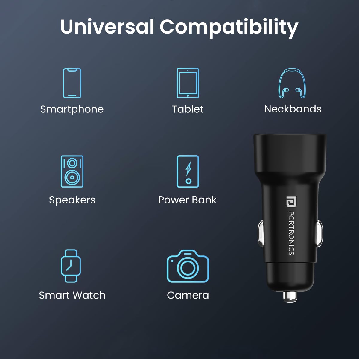 Portronics Car Power 30 Dual Output Fast Car Charger with 30W Type-C PD & 30W USB, LED Indicator, Charging Adapter Compatible with Cars for iPhone & Android Smartphone, Smartwatch(Black)