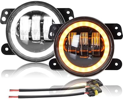 4 inch LED fog lights with DRL and Amber Turn Signal Fog Light Round White Light LED Fog Light Assembly Fog Lamp Compatible with All Cars Comfortable 40W Two Lens White & Yellow  set of 2